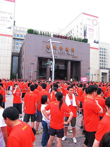 8/31/2007 一早騎車來到信義路,一路上看到許多騎機車穿著路跑T恤的人
